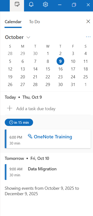 View All Your Meetings and Events in One Place Using the “To Do” Bar